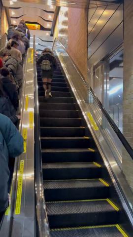 利用客が前から来ているにも関わらず、一心不乱に逆走し、迷惑行為をやめない女性。
