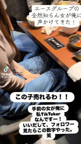 「お前ら夜で働いてんねやからさァ!!」と脅してスマホを奪い、TikTokのフォロワー数を確認しそのまま焼肉の網へ。