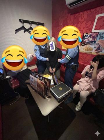 真ん中の金髪の女性が警察に囲まれ連行される様子を面白画像としてアップした模様。