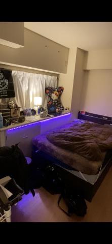 ベッド脇に紫のLEDですか!?