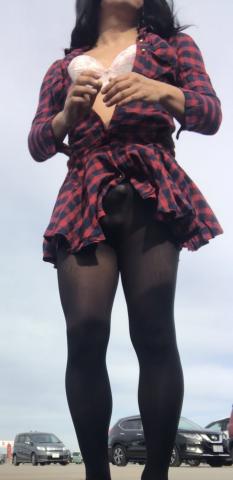 風が強くスカートが捲れ上がって興奮してしまい