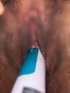 澄ました感じでお尻にバイブ、
