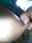 素敵な乳首です。あまがみして歯でコロコロ転がしたり引っ張ったりしたいですね。もう片方は指でつまみ上げていじくり回したいな(^o^)