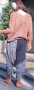 ドルマンスリーブ、サルエルパンツといった服装です