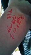 上手く書けなかったので代わりに足に書きました