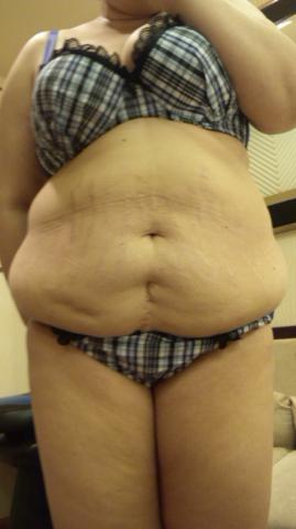 垂れたオッパイ。大きな乳輪。そしてお腹回りのお肉!