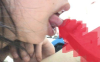 一旦おちんちんを抜き、爪でゴムの先を破ってまた挿入