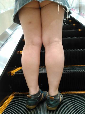 下から見るとこんな感じに妻のノーパンでっぷりお尻見えます。