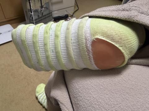 昨日トレーニングしてたら靴下におっきな穴が空いてしまったので廃棄しようと思いつつ、靴下でもオカズにしてくれる方がいらっしゃれば置こうかと…