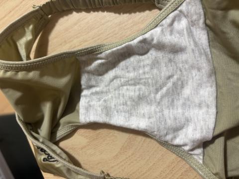 やはりクロッチ部分は乾いていましたが、大きなシミ部分の変色ははっきりとわかるレベルでついてます