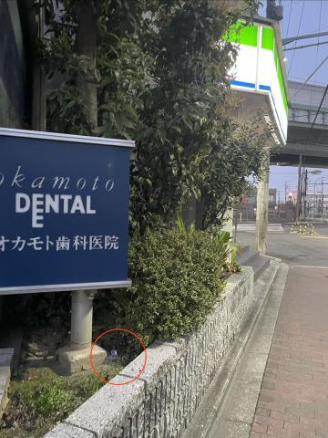 正確にはオカモト歯科の看板下です