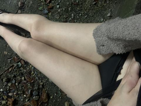 外で撮った太い脚で