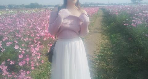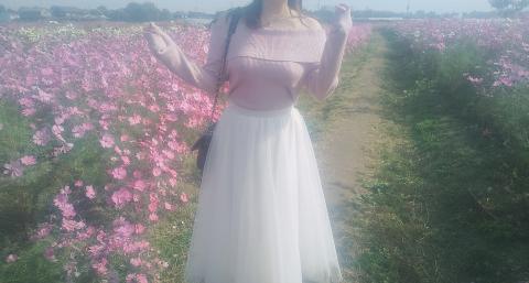 秋桜畑とすごくマッチして、モデルみたいで綺麗ですね