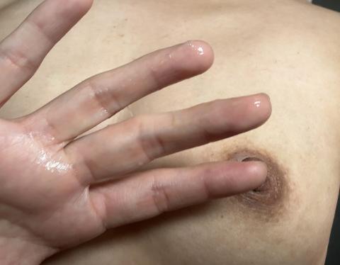 後ろから乳首を愛撫して