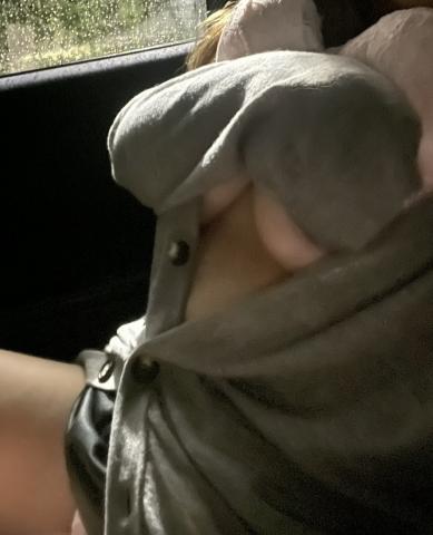 ブラは隠してNBで移動中かな。大きなおっぱいの先がドキドキで固くなってたりしそう。