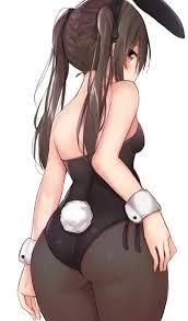 半分はみ出したバニーガールの衣装でお尻に白く